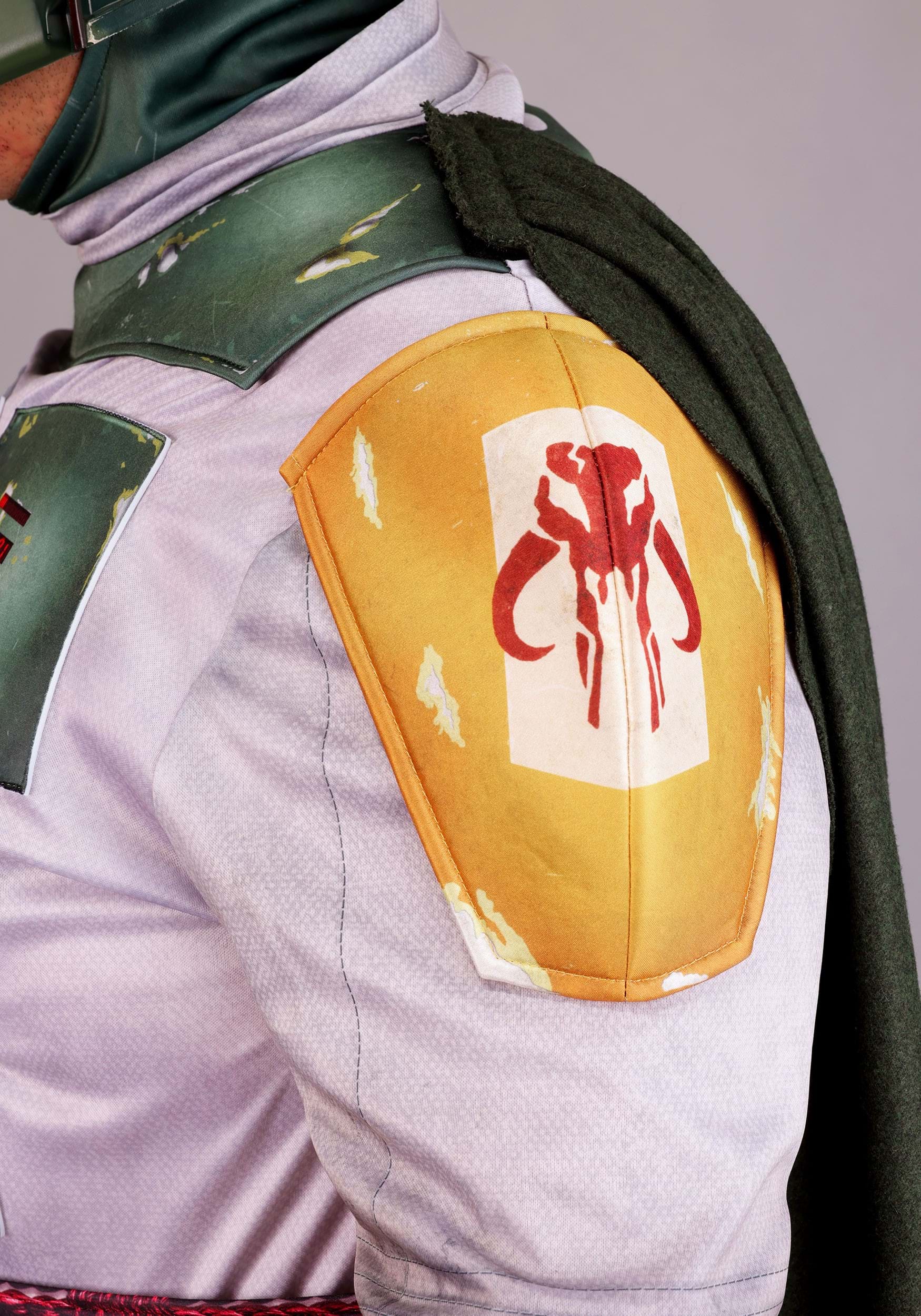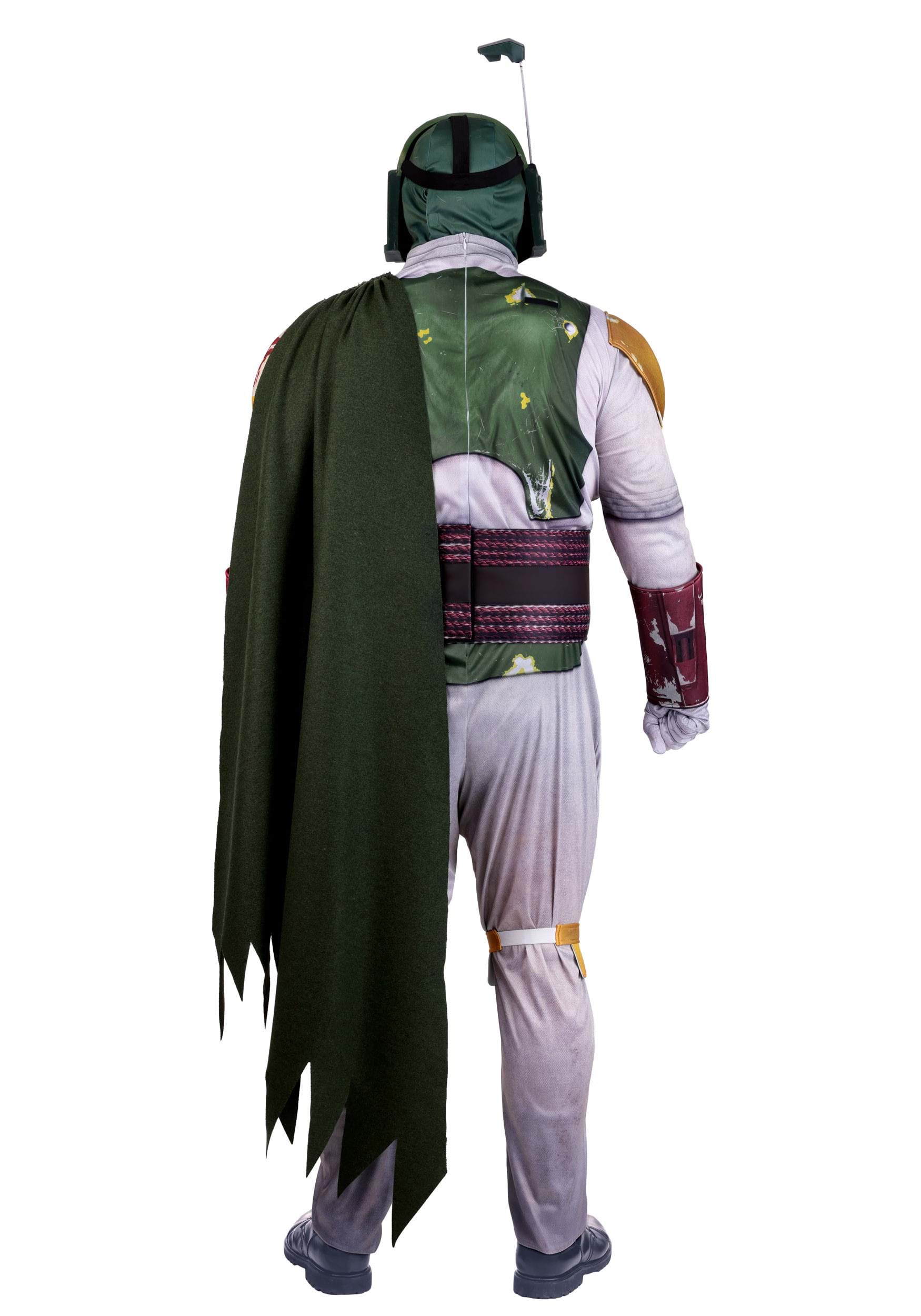 The mask? It's fierce. The foam faceplate blends into the hood, complete with a dark, semi-see-through visor and a hidden strap for a clean, helmeted finish. And yes, there's even a brushed green cape that snaps onto the shoulders, because Boba never leaves home without it.