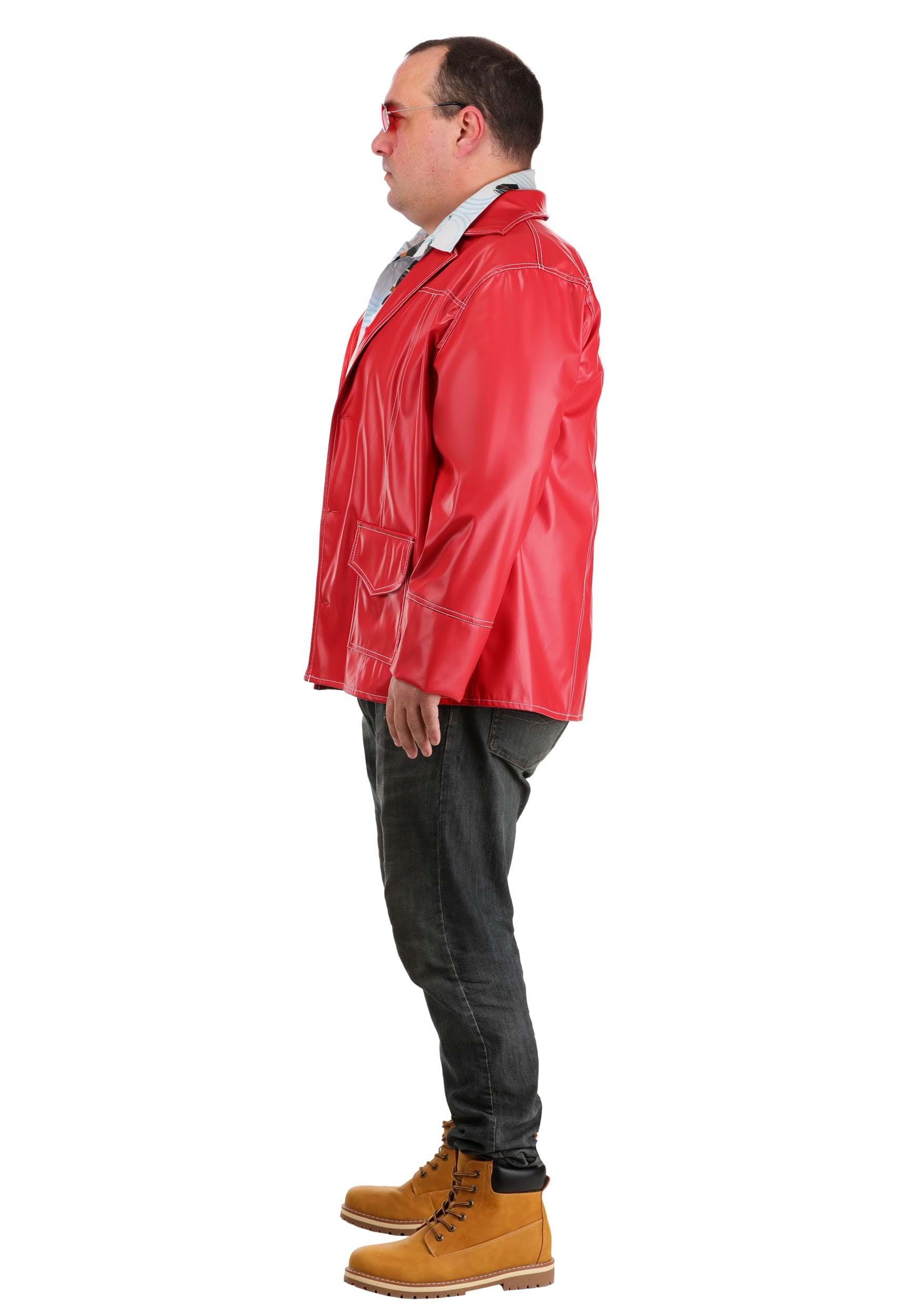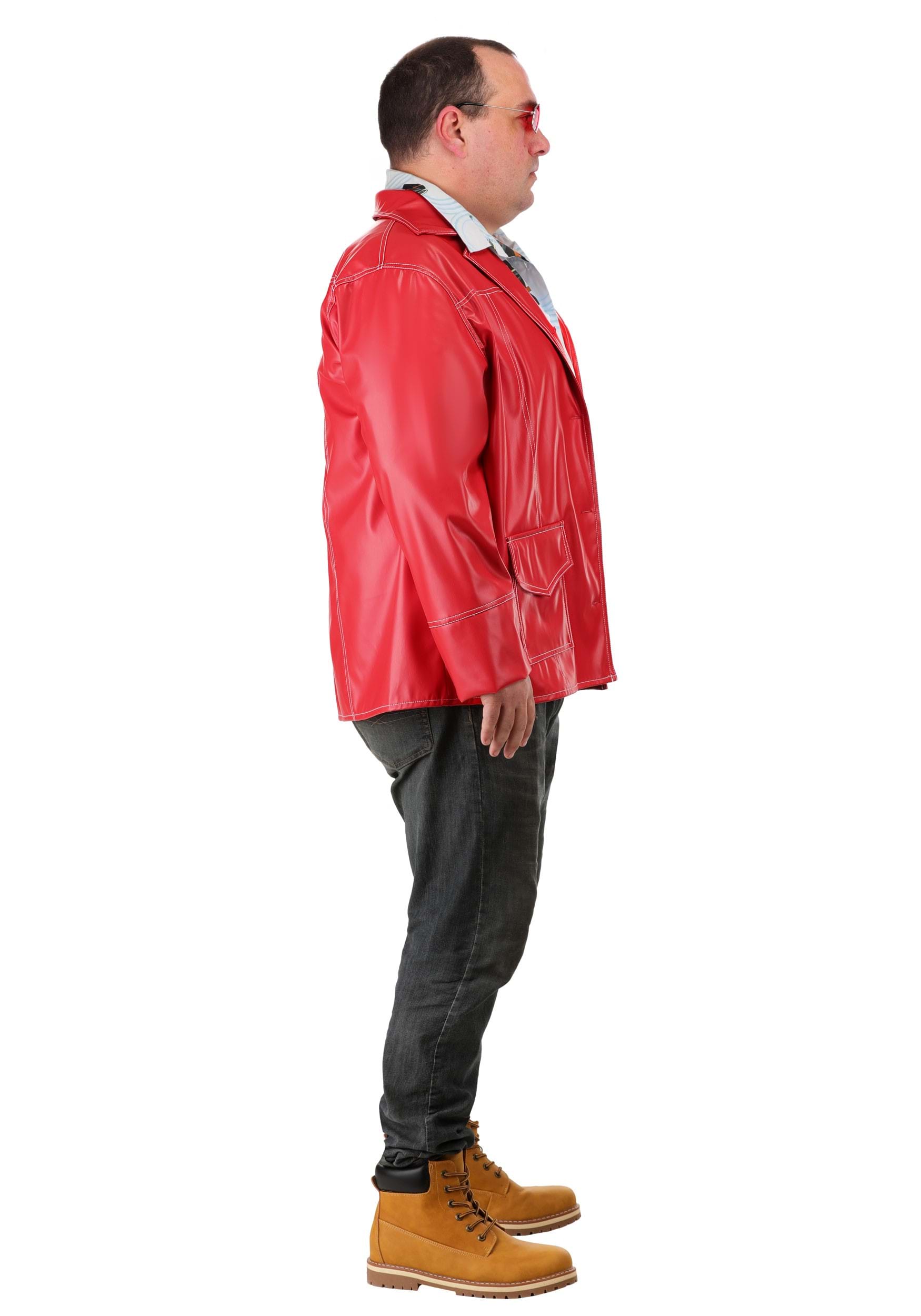 This costume includes all the key pieces needed to pull off Tyler Durden's unmistakable look. The faux vinyl red jacket gives off a vintage leather vibe, instantly setting the tone for a night of mayhem (or just looking ridiculously cool). Underneath, the sublimated print button-up shirt adds that touch of loud, carefree style that he rocks so effortlessly.