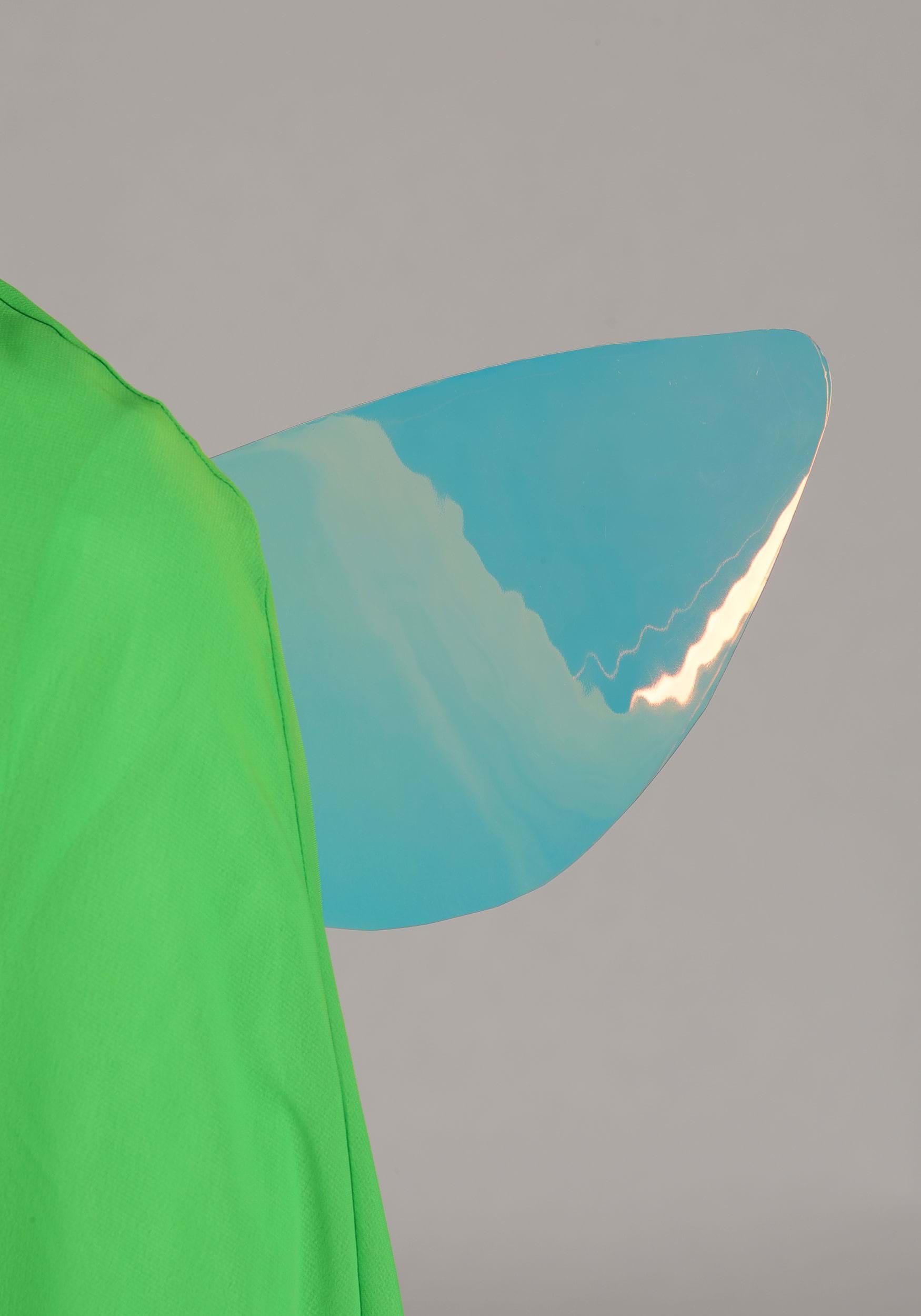 - Chiffon cape has an acrylic jewel, underneath it secures the cape with hook and loop fastener, slits in the back of the cape to slide the wings through