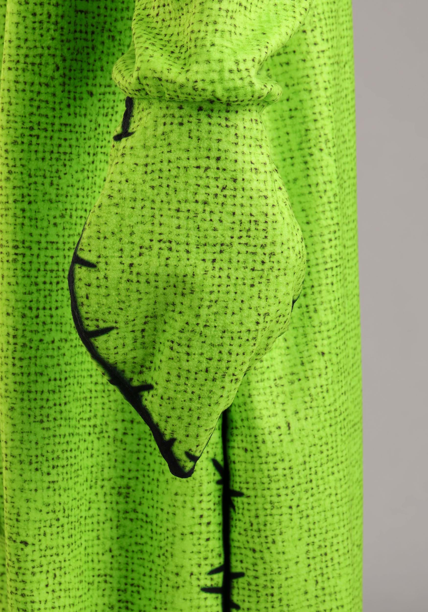 This plus size Oogie Boogie onesie is made from fleece with printed burlap and stitching details. The hood features embroidered eyes and a bug-print hood lining, while the booties, ribbed cuffs, and easy flip-back gloves make it a practical and cozy choice. Officially licensed, this onesie is ideal for any movie lover looking for a creepy-cool Halloween costume!