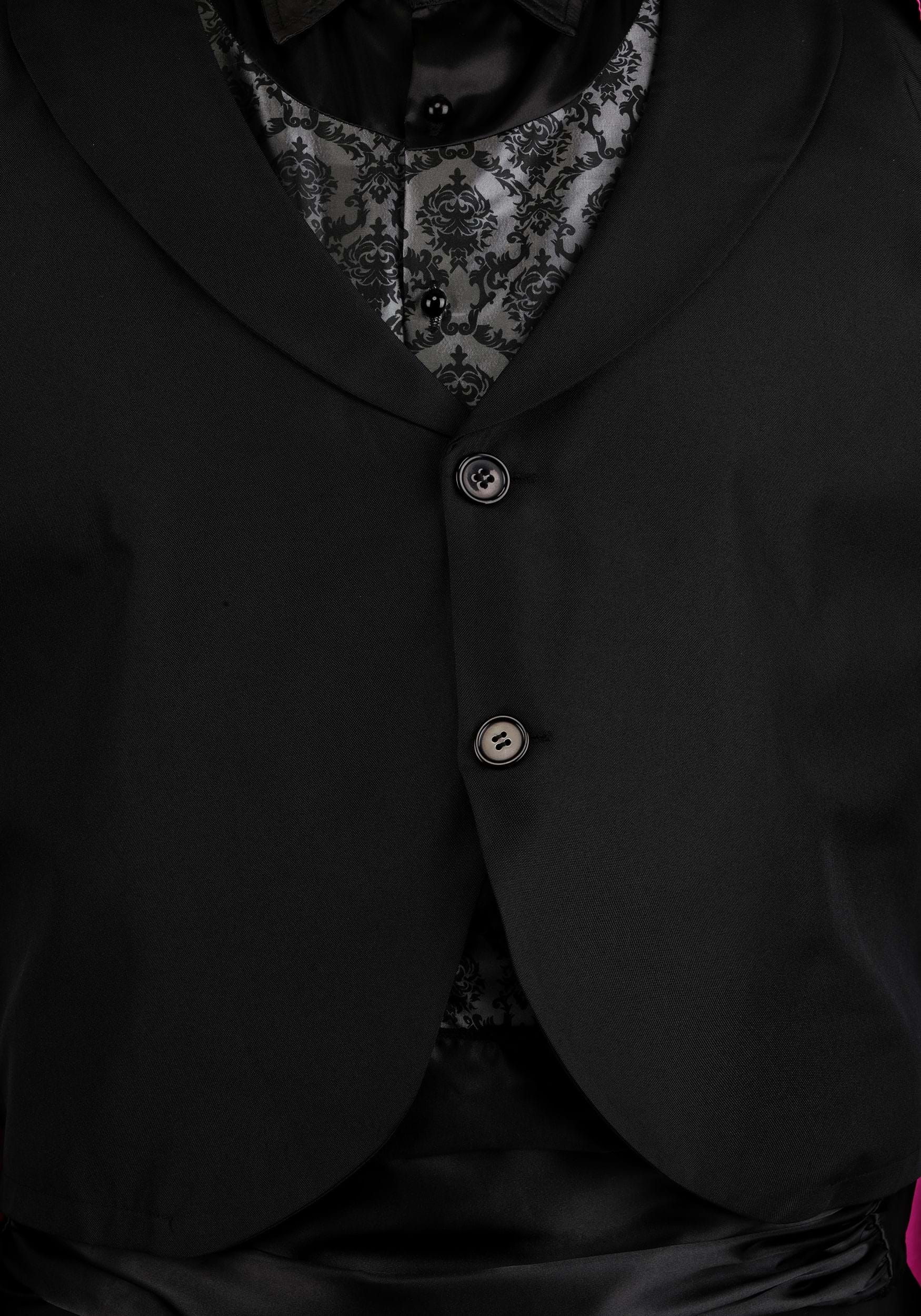 This officially licensed costume comes with all the vampire essentials: a sleeveless taffeta shirt styled like a button-up and vest, a wide satin cummerbund with a hook and loop closure, and a poplin coat with a rounded shawl collar and two-button front to pull the whole "creature of the night, but make it classy" vibe together.