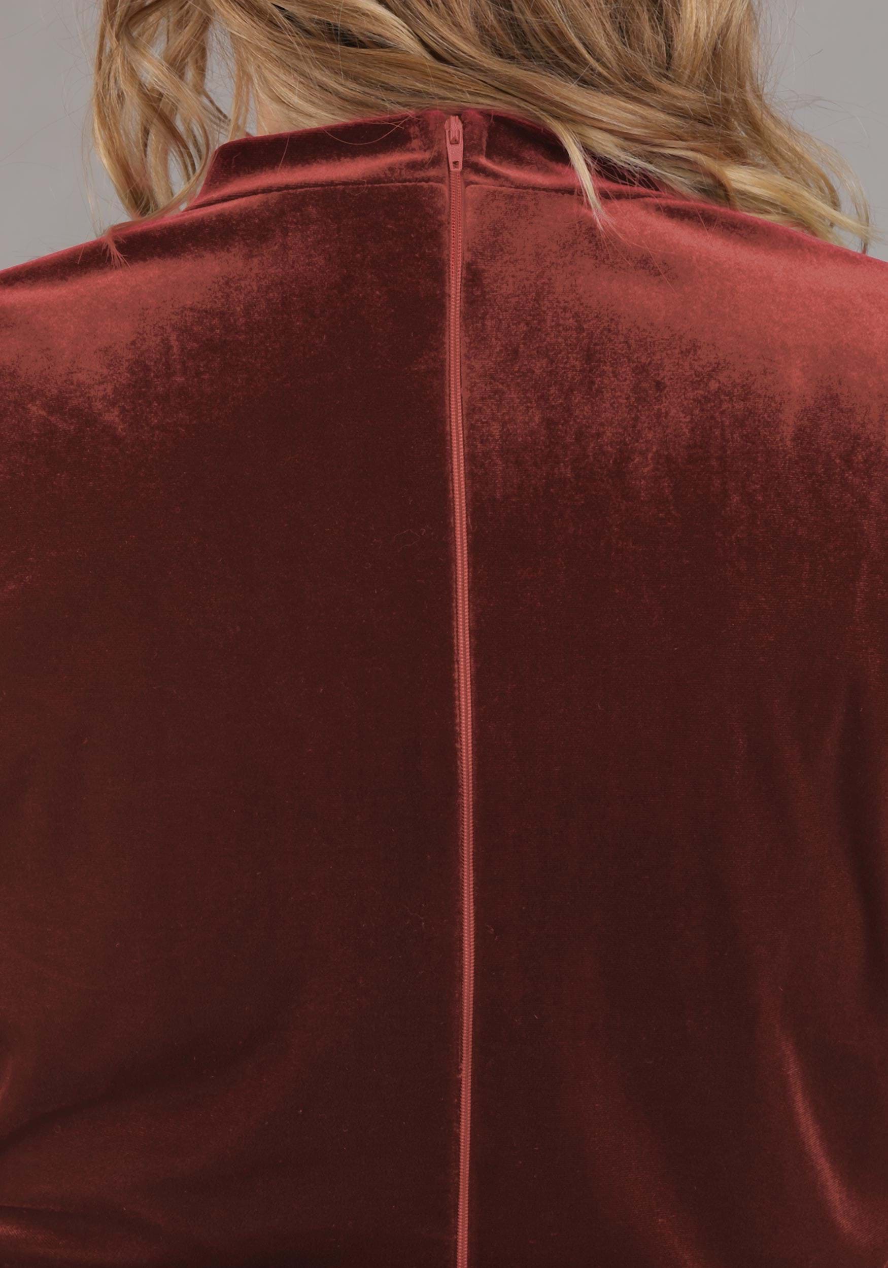 - Velvet shirt has zipper down center back, sublimated clock on the front, stretch satin and foam sleeve caps have embroidered swirls