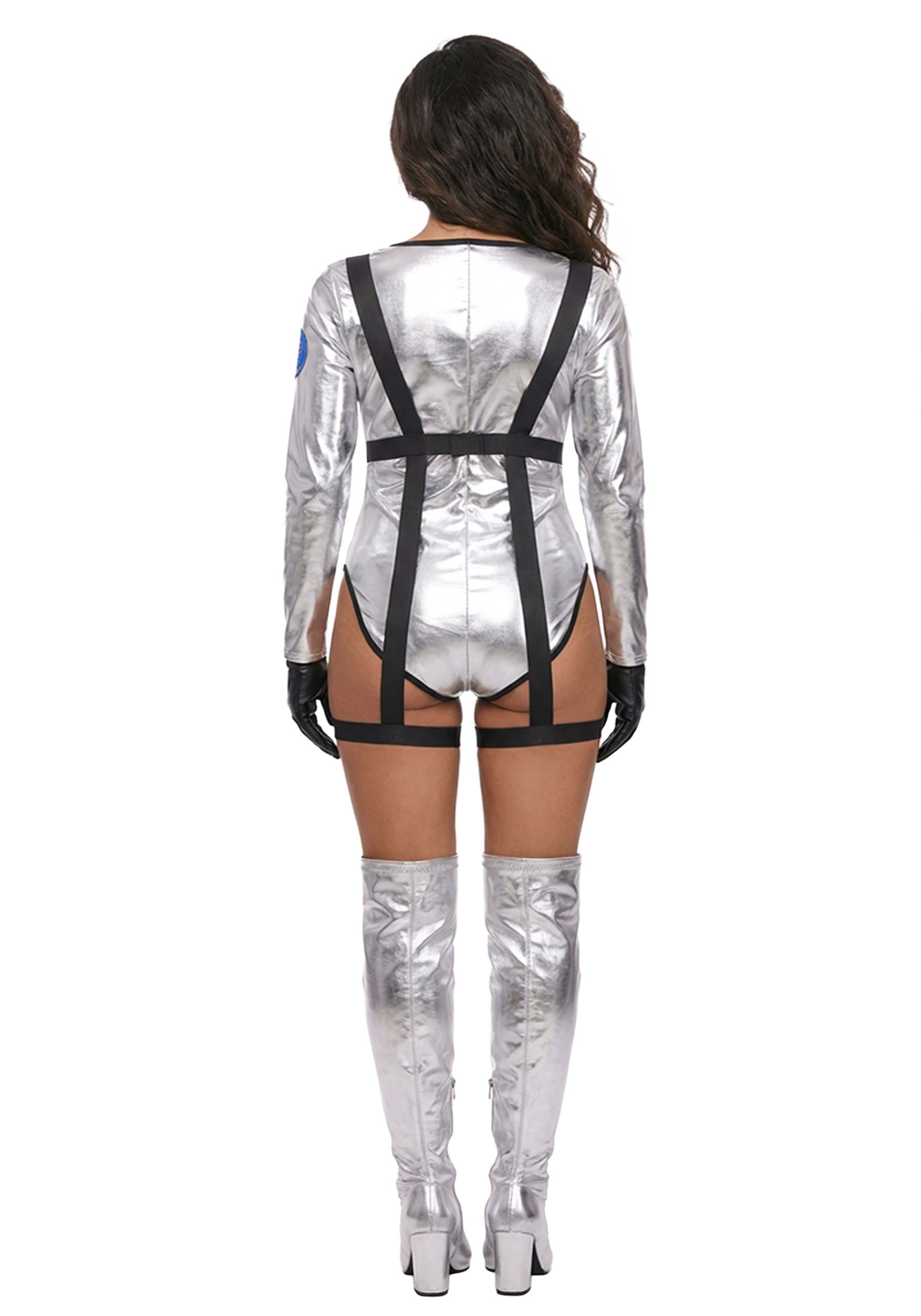 This is an exclusive Sexy Silver Astronaut Costume Romper for Women.