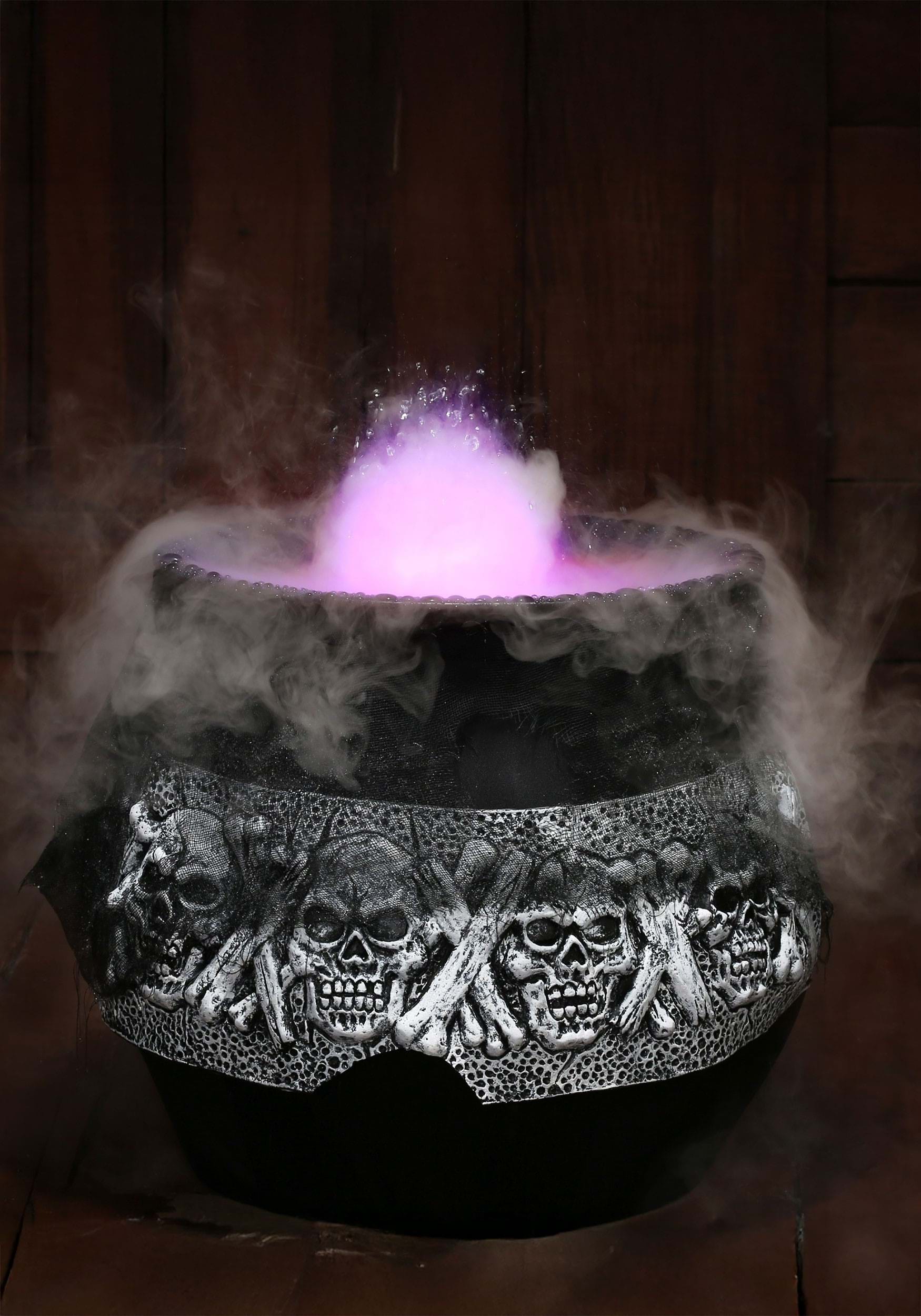 16-Inch Smoking Gothic Skull Cauldron Decoration