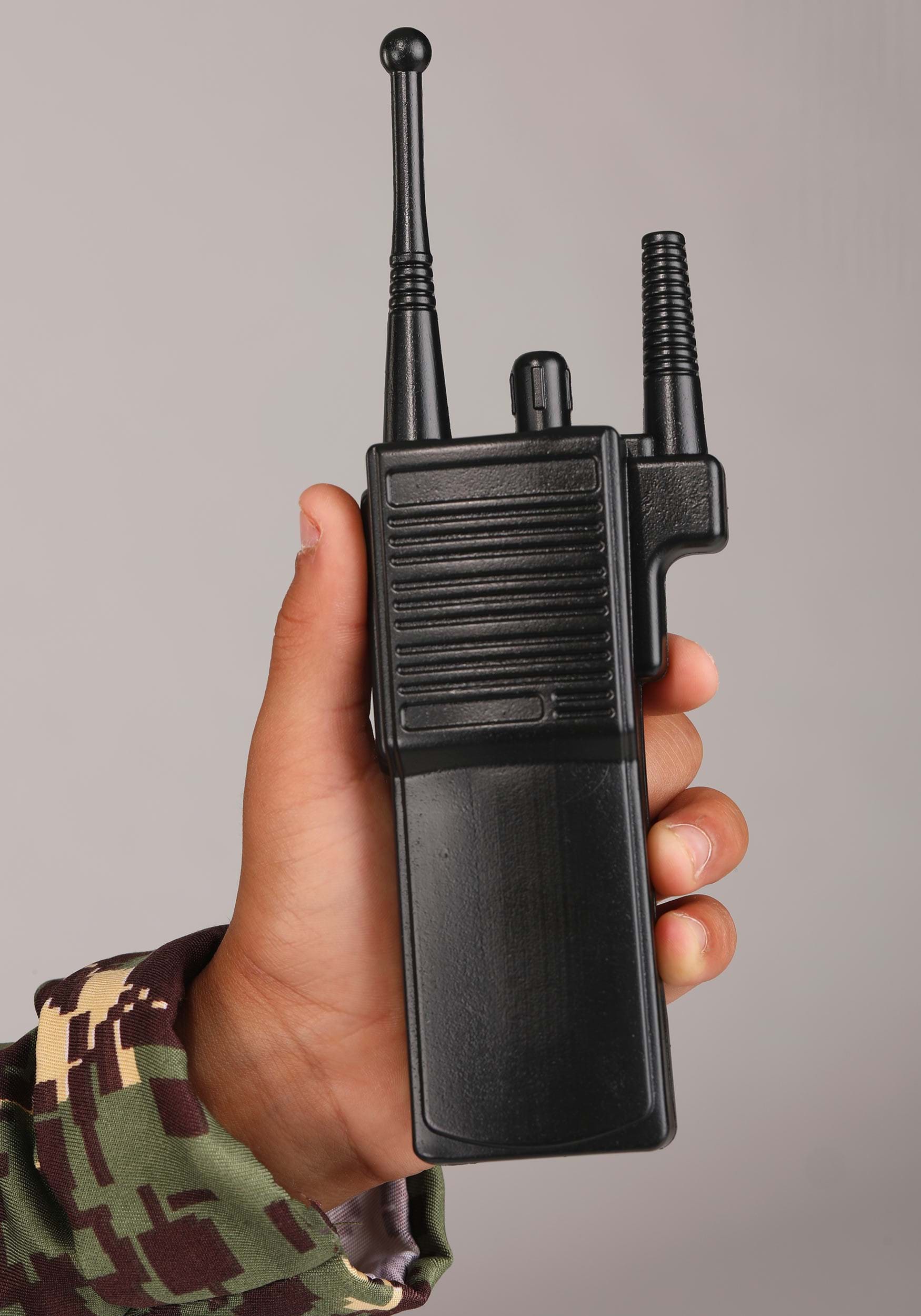 - Molded plastic walkie talkie and binoculars fit into pockets