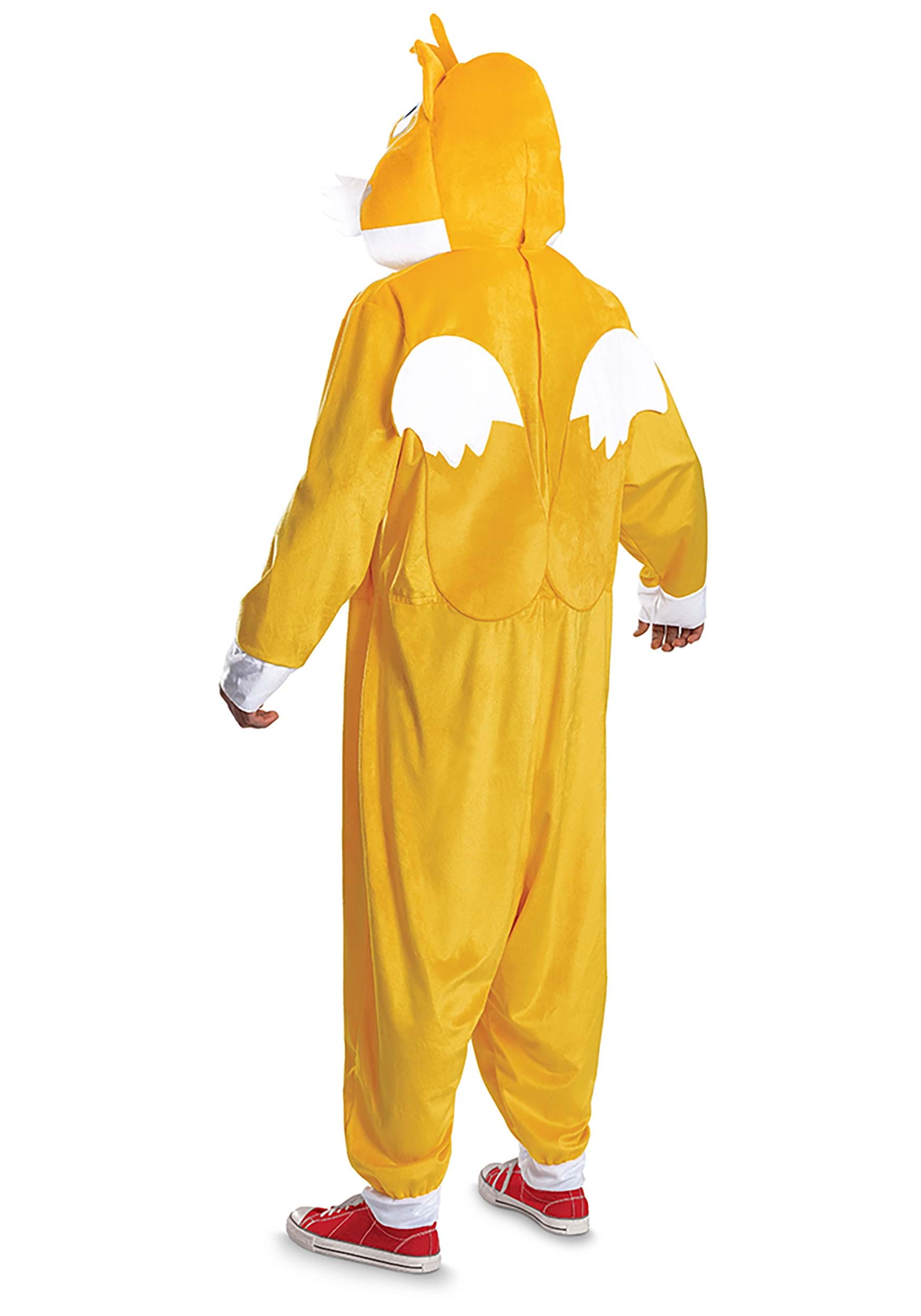 This officially licensed Tails costume is a hooded jumpsuit that's as comfy as it is chaos emerald–ready. It fastens in the back with handy hook-and-loop strips, so you can suit up faster than Sonic can say "Gotta go fast." The oversized hood features Miles "Tails" Prower's big blue eyes, his perky fox ears, and his permanently polite expression.