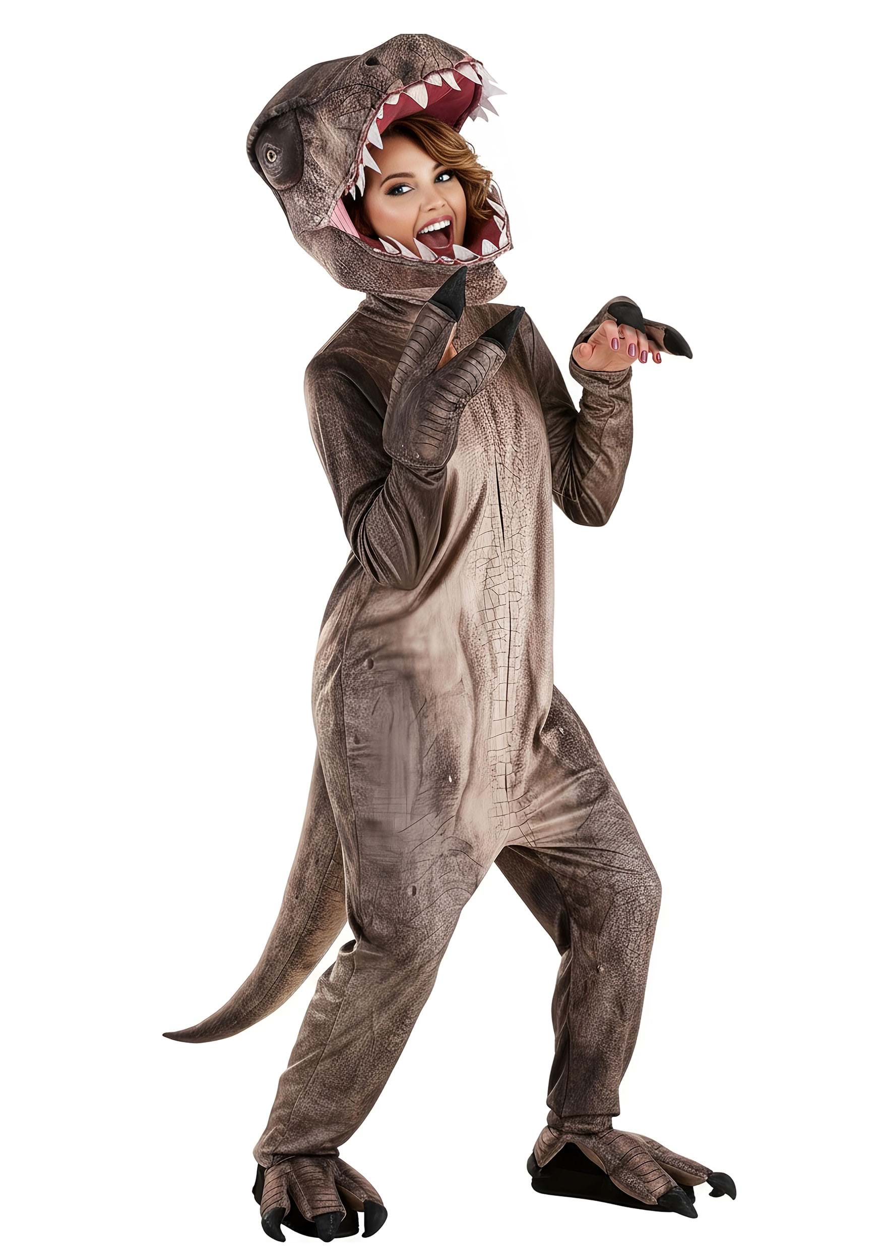 Yeah, we love dinosaurs here. Including the fact that dinosaurs eggs were the size of basketballs, and that the dinosaurs that lived by water usually left the best fossils. Now, if you asked us what dinosaurs make for the best Halloween costumes, we'd have to say this one right here. Imagine the Jurassic statement you'll make when you kick down the front door while wearing this Adult T-Rex costume.