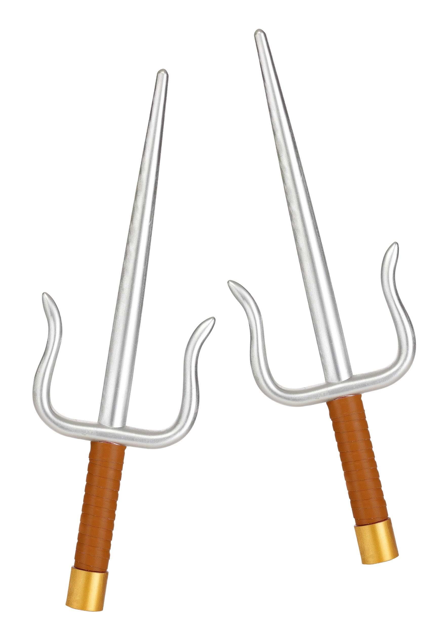 This officially licensed set of molded plastic sais features the signature three-pronged design, styled just like the animated originals. The silver “metal” blades are lightweight and safe for costume use, while the sculpted handles give off that classic wood-and-wrap look without weighing you down. They’re tough-looking but easy to carry, making them a solid pick for trick-or-treating, group cosplay, or striking a few brooding poses under a streetlamp.