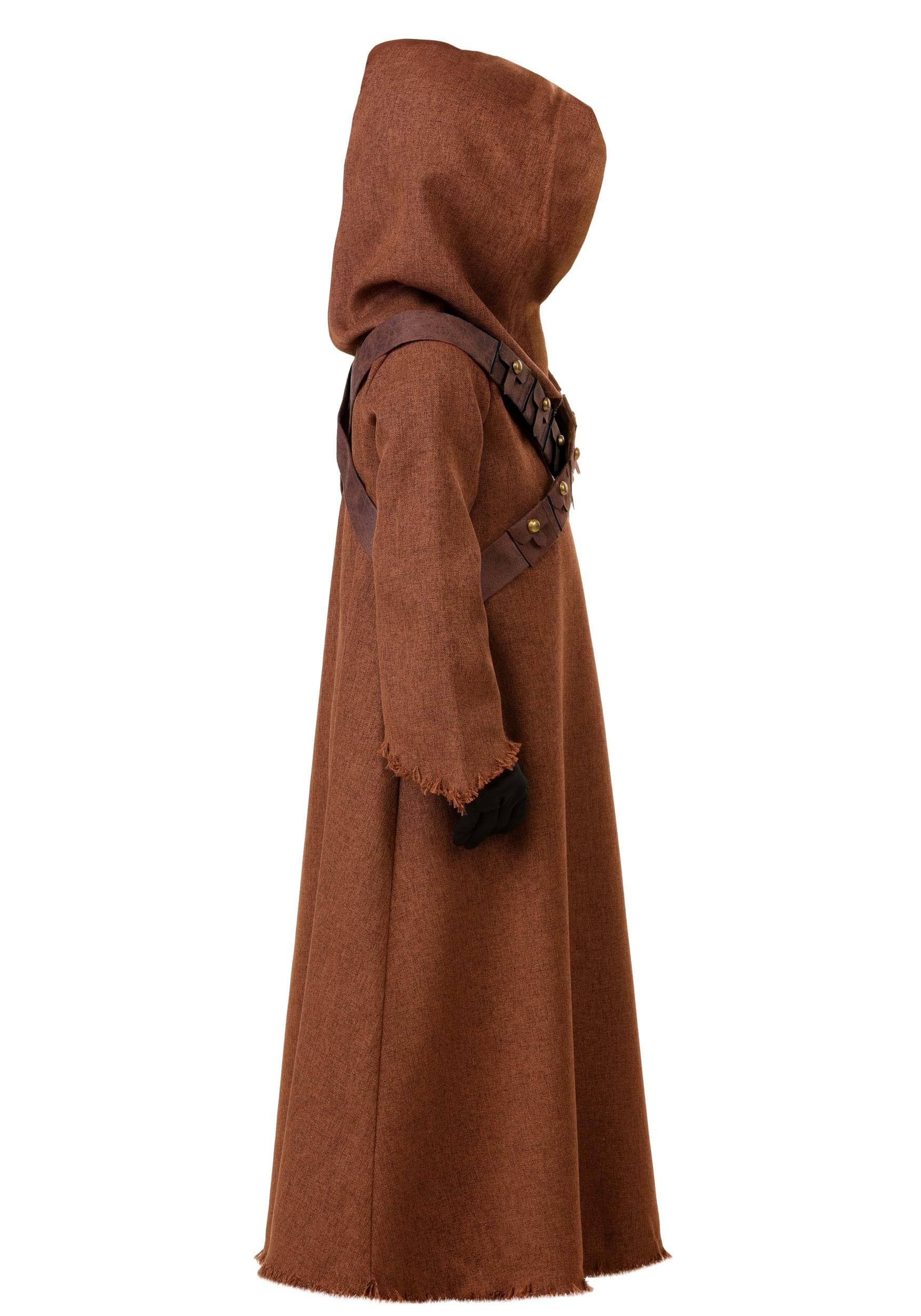 This adorable costume features a rugged brown tunic with a woven texture that looks like it's been through a few desert adventures thanks to the frayed edges on the cuffs and hem. Fastening at the back of the neck with hook-and-loop closures, it's easy to slip on.