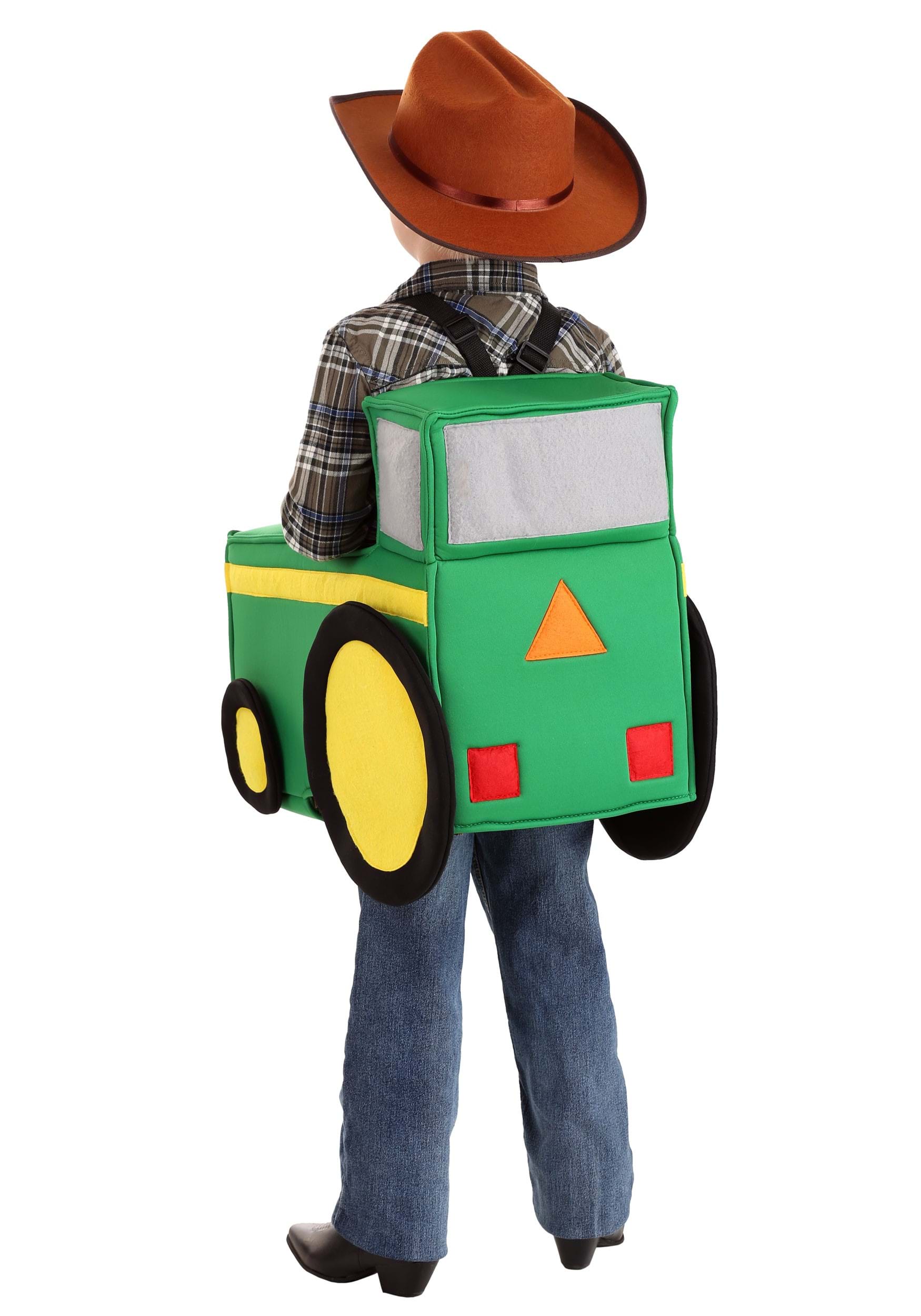 This costume is pretty much any toddler's dream, and that's just what our in-house design team was aiming to make when they crafted this exclusive kid's look. The sculpted tunic looks just like a little green tractor, with yellow details, headlights, wheels, and a grille! It fits over your kid's clothes via adjustable straps. For added appeal, deck your child out in farm-ready attire — a flannel shirt, cowboy hat, and cowboy boots create a too-cute visual!
