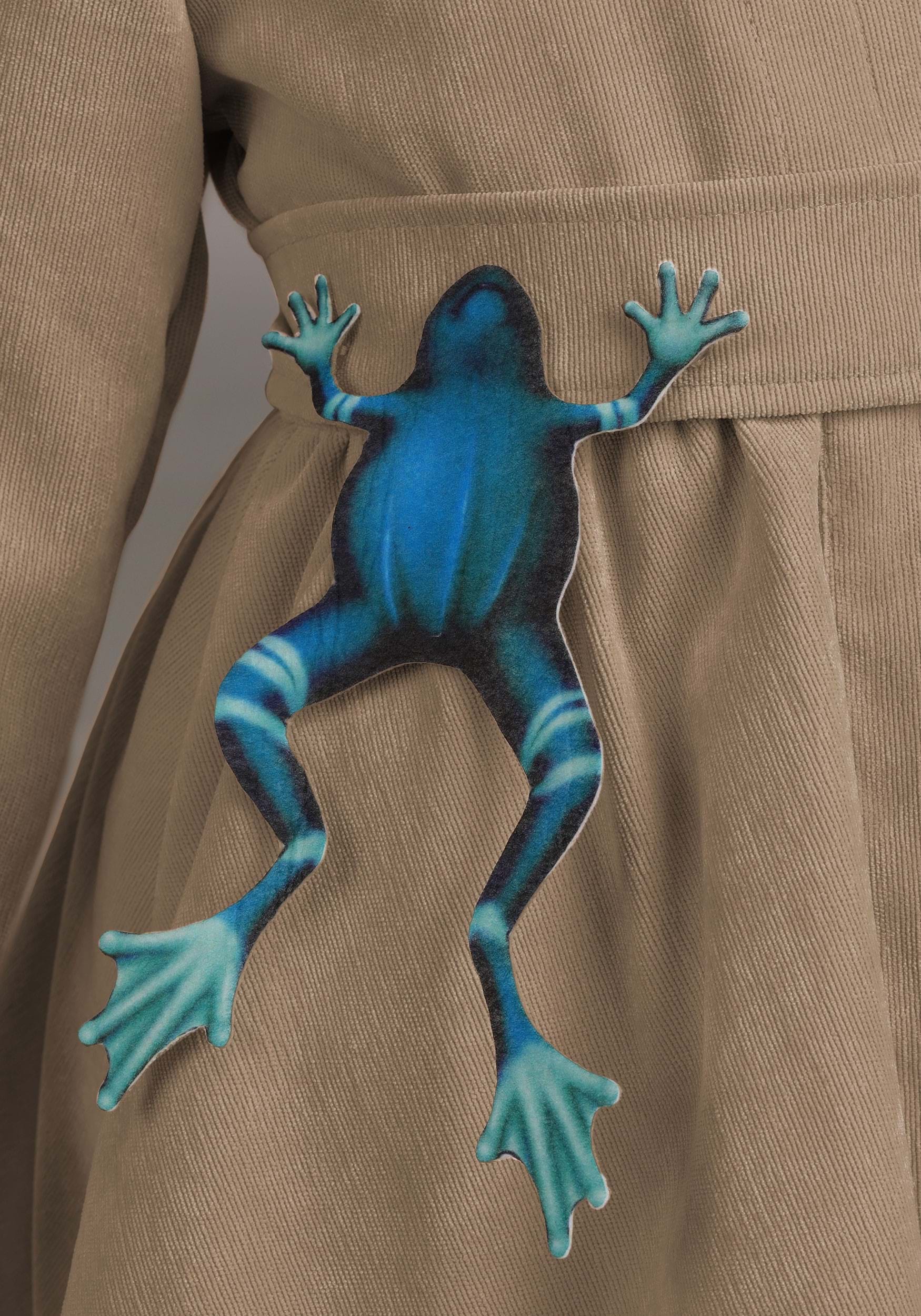 The skirt has an elastic waist and a layer of tulle underneath to add just the right amount of poof for galactic twirls. A matching corduroy belt wraps around the waist and fastens in the back, complete with a snap-on felt frog buddy. The soft headband slips on easily and features plush Minky fabric and foam-stuffed, stick-out ears. Finally, three-finger Minky gloves with felt claws let your toddler wave, point, and wiggle with maximum cuteness.